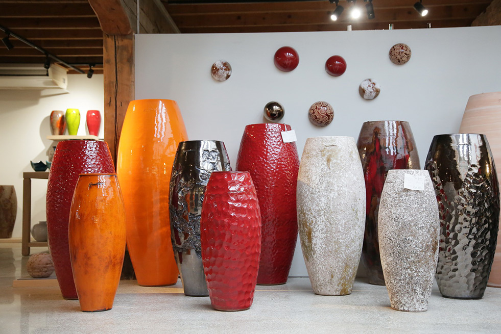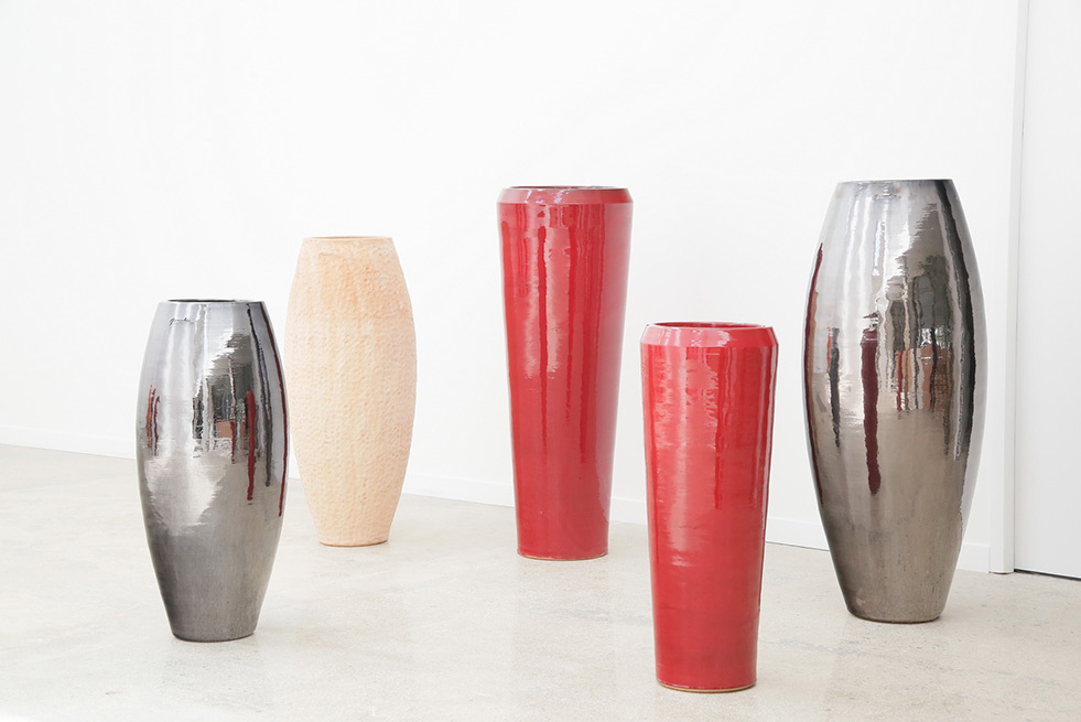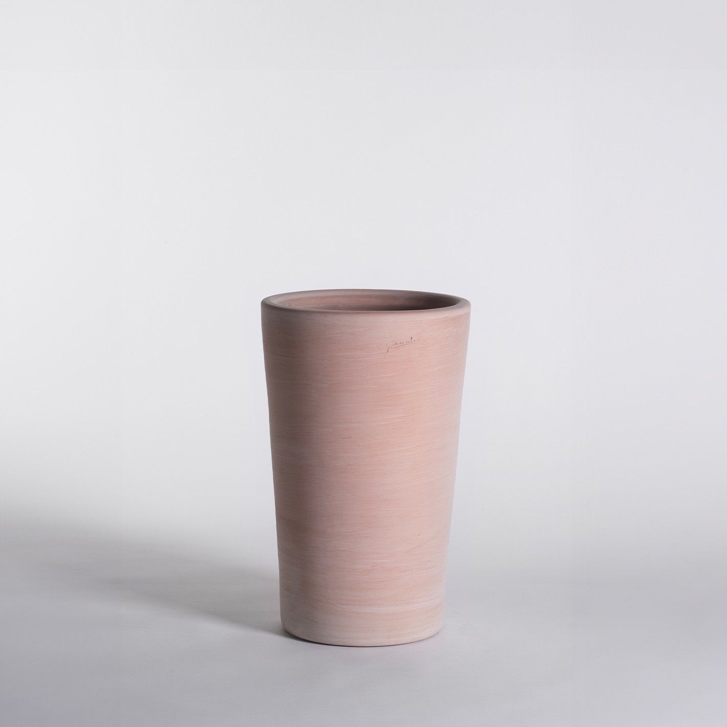 The spindle vase is distinguished by its elegant and balanced shape. Its slender base is reminiscent of contemporary decorative vases, and its curves evoke those of amphorae. Its design, a blend of styles, allows it to integrate seamlessly into all kinds of indoor and outdoor spaces. This model can be made with textures and/or glazed.