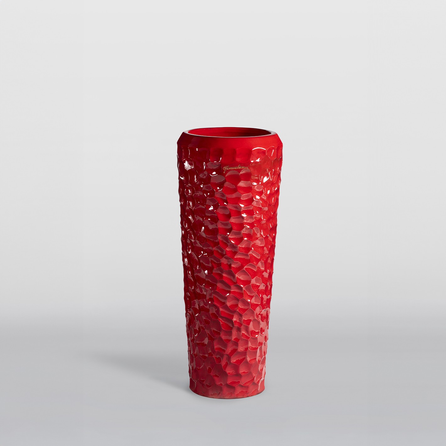 Vase tube | Texture : Alveole | Couleurs (terre naturelle ou émail) : Rouge | Taille (diamètre / hauteur) : 32x94