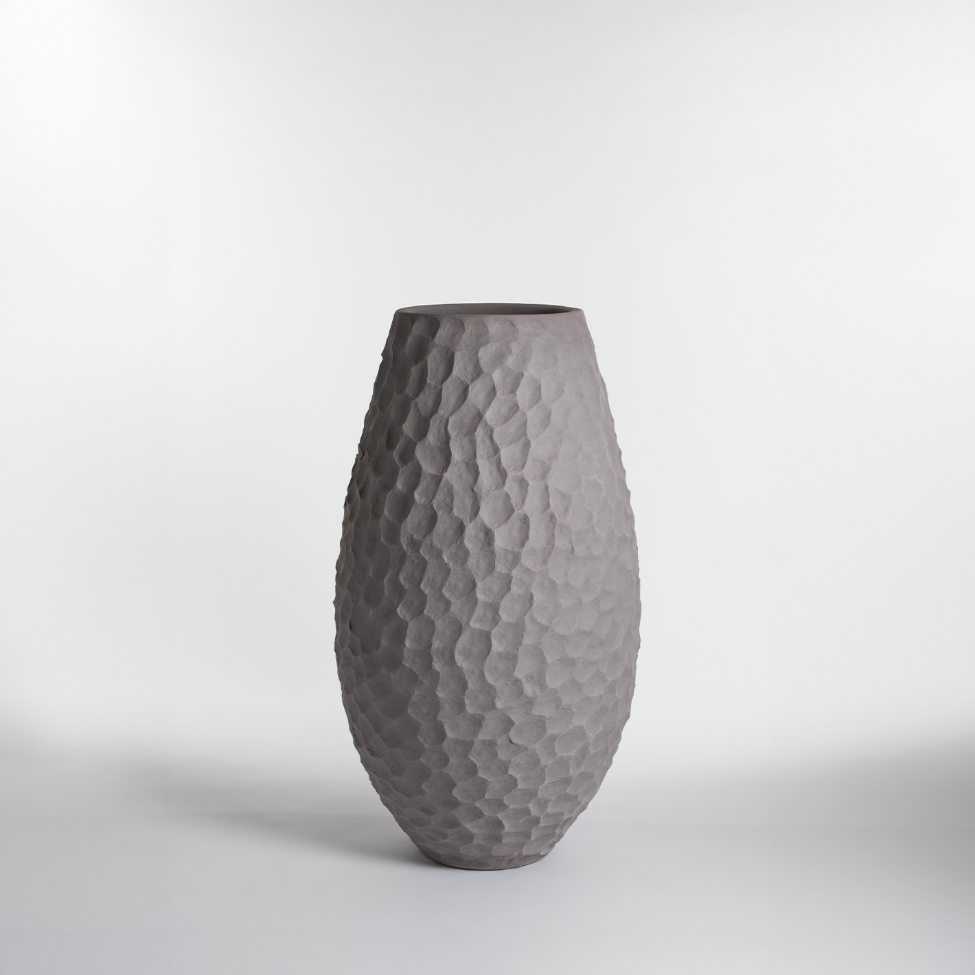 Vase aubergine | Texture : Alveole | Couleurs (terre naturelle ou émail) : Grise | Taille (diamètre / hauteur) : 48x81