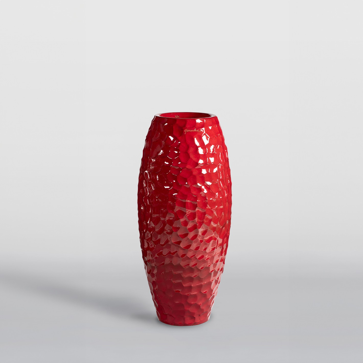 Fuseau | Texture : Alveole | Couleurs (terre naturelle ou émail) : Rouge | Taille (diamètre / hauteur) : 38x80