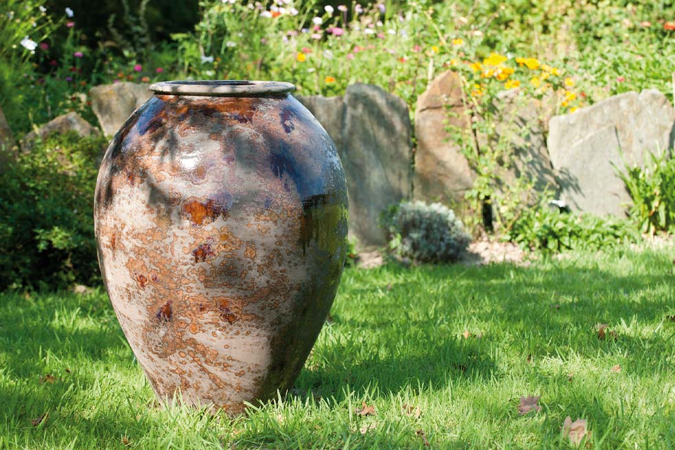 La jarre ventrue est fabriquée sur commande, au tournage à la corde, La structure cordée est d’abord positionnée sur un socle d’argile qui formera le fond du pot. L’argile est ensuite appliquée « au lancer » : cette technique consiste à projeter à la main des poignées de terre sur l’ensemble de la surface cordée. Enfin la paroi est lissée grâce à un gabarit extérieur.. Personnalisez votre Poterie selon votre goût avec différentes tailles, effets de textures ou couleurs de terres ou d’émaux.