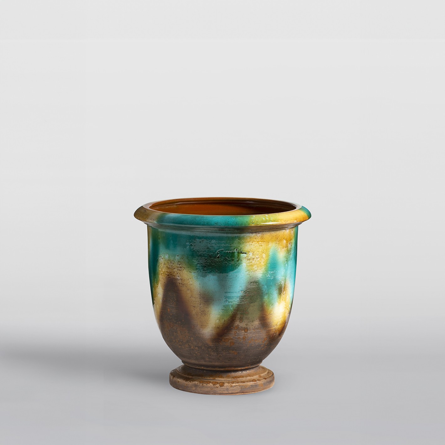 Le vase sur pied s'inspire des poteries italiennes des jardins Médicis. Son style classique et chic s'adapte très bien aux paysages des châteaux, manoirs et villas de caractère. Nous proposons 3 versions émaillés : col vert, col jaune et émaillé jaspé. . Les poteries émaillées peuvent rester à l’extérieur tout au long de l’année. Pensez à les protéger du gel.