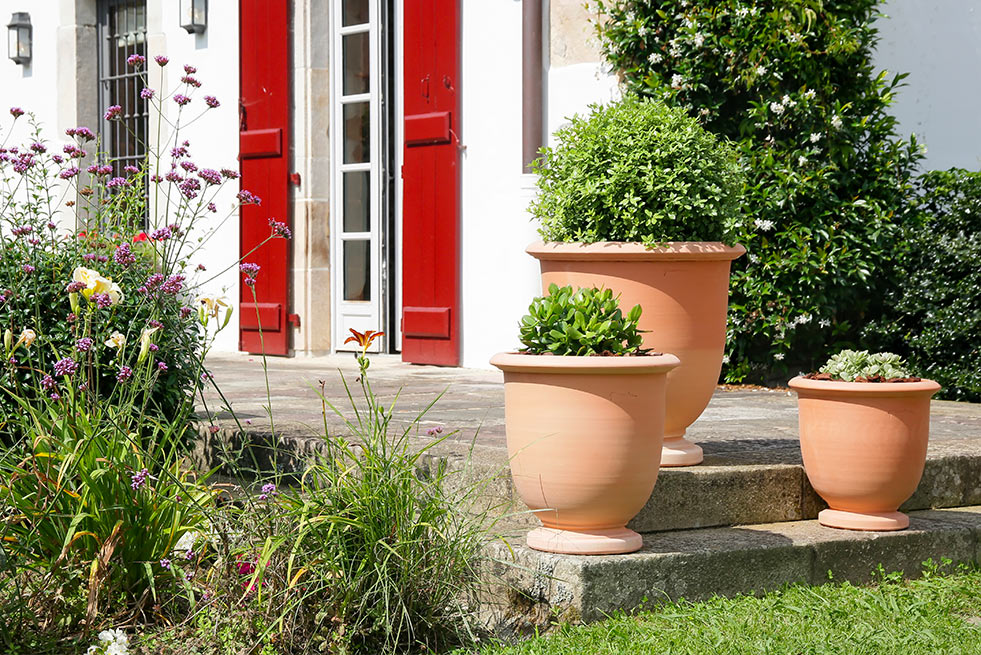 La terre cuite est le matériau idéal par excellence pour le bien être de vos plantes.Elle est par ailleurs un bon isolant thermique. En été, elle aide à maintenir la fraîcheur des racines, tandis qu'en hiver, elle les protège du froid. Les plantes bénéficient ainsi d'un environnement optimal pour une croissance saine tout au long de l'année.
